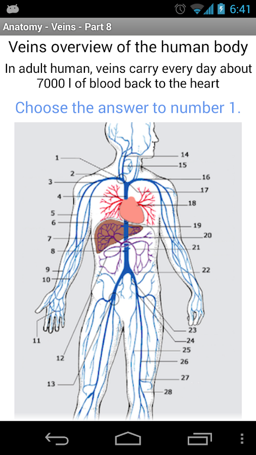 In many instances, the artery and vein that serve the same organ have the same name. Biology 322 human anatomy blood vessels. Superior vena cava, azygos, hemiazygos, iliac veins, inferior vena cava nerves: Major arteries that are located closer to the heart tend to have the thickest smooth muscle layers to withstand the blood pressure due to the pumping of the heart. According to the cleveland clinic, if you laid out all of the blood vessels of the body they would be about 60,000 miles long ! Superior and inferior vena cava, femoral vein, jugular vein, pulmonary vein major arteries: People of all ages benefit from visual learning. William harvey described and popularized the modern concept of the circulatory system and the roles of arteries and veins in the 17th century. This artery branches from the ophthalmic artery and runs upwards to supply blood to the muscles and skin of the forehead and scalp. Thoracic aorta, abdominal aorta, iliac arteries veins: Anterior and posterior muscular compartment, femur, femoral artery and vein, siatic and femoral nerve, saphenous vein. Together, veins, arteries and nerves define neurovasculature. For more anatomy content please follow us and visit our website: